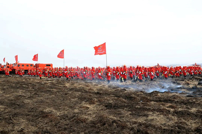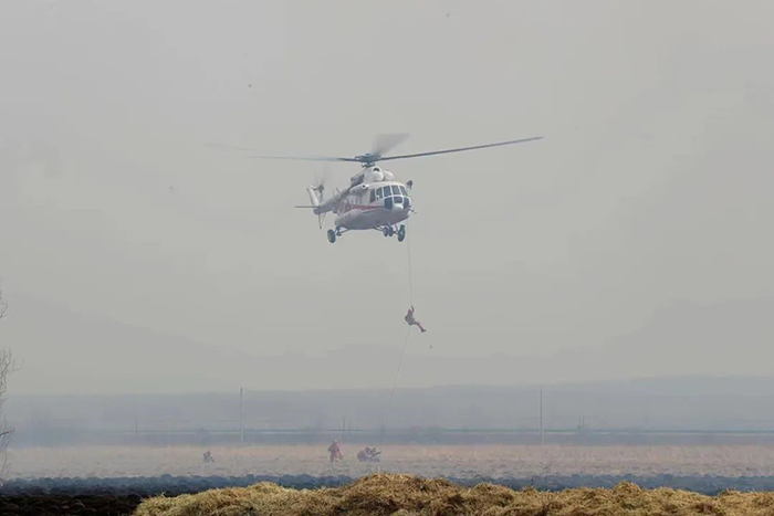 上午11時許,演練指令正式下達(dá),信號彈騰空而起,一場以管護(hù)區(qū)內(nèi)某重點林區(qū)發(fā)生火災(zāi)為演練背景的撲火戰(zhàn)斗全面打響。隨著一道道命令的下達(dá),各參演單位指戰(zhàn)員迅速行動,按照林火監(jiān)測和火情報告、接警處置和啟動預(yù)案、組織兵力投送、組織指揮滅火行動等工作流程,有序組織開展演練。演練中,撲火隊伍結(jié)合火場態(tài)勢,科學(xué)選用兩翼對進(jìn)、鉗形夾擊,多點突破、分段圍殲等戰(zhàn)法,重點演練了無人機(jī)滅火、直升機(jī)空中作業(yè)、常規(guī)滅火、大型裝備滅火等內(nèi)容。來自市森林消防支隊、應(yīng)急航空救援伊春站、市應(yīng)急救援支隊、市消防救援支隊,烏伊嶺、湯旺河、新青、紅星、五營、上甘嶺、友好、翠巒、美溪林業(yè)局公司撲滅火大隊,新青林業(yè)局公司紅林、湯林林場分公司快速撲滅火小隊和民兵預(yù)備隊等單位,共計800余人參加演練。