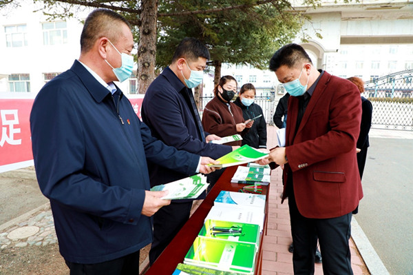 阿木爾林業(yè)局在人員密集場所設(shè)立宣傳站,向職工群眾宣傳森林認證相關(guān)知識(王力 攝)