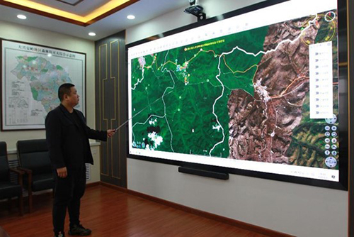 圖強林業(yè)局防火辦工作人員通過森林防火感知系統(tǒng)平臺查看區(qū)域內(nèi)的防火動態(tài)(趙明 攝)