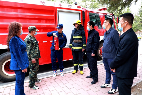 防災減災重在預防。阿木爾林業(yè)局城鎮(zhèn)消防大隊戰(zhàn)斗員現(xiàn)場還為干部職工講解突遇火災時滅火器的正確使用方法,普及防災減災知識。