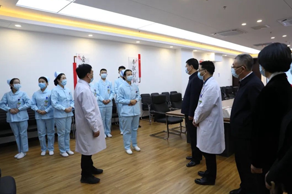在市第五人民醫(yī)院(市傳染病醫(yī)院),隋洪波先后來到負(fù)壓病房、手術(shù)室、ICU病房了解醫(yī)院建設(shè)情況,與護士代表親切交流并致以節(jié)日問候,現(xiàn)場向大家宣講省第十三次黨代會精神。他指出,市傳染病醫(yī)院新建項目竣工投用后,醫(yī)院硬件設(shè)施和醫(yī)療設(shè)備都有了很大提升,為建設(shè)高水平專業(yè)醫(yī)院奠定了堅實基礎(chǔ)。要深入學(xué)習(xí)貫徹省第十三次黨代會精神,切實把省黨代會精神轉(zhuǎn)化為民服務(wù)的實際行動,持續(xù)加強醫(yī)護隊伍建設(shè),從健全完善規(guī)章制度、規(guī)范診療流程和服務(wù)標(biāo)準(zhǔn)等方面入手,多措并舉提高醫(yī)療護理水平和服務(wù)質(zhì)量,做到軟件、硬件“雙提升”。