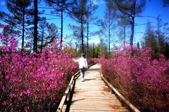 黑龍江經(jīng)濟網(wǎng)訊(伊軒 記者仉慶華)春光旖旎惹人醉,花開含笑迎客來。連日來,隨著氣溫的逐漸回升,豐林縣紅星火山巖地質(zhì)公園景區(qū)的興安杜鵑傲然綻放,點綴得小興安嶺百里林帶姹紫嫣紅。