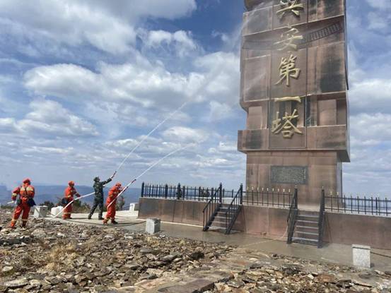 據(jù)相關(guān)負(fù)責(zé)人介紹,“興安第一塔”因所處位置大興安嶺最高峰而得名,這里常年缺少水源,瞭望員日常生活用水需要從幾公里外的地方人工背運,今天用水噴淋“興安第一塔”尚屬首次。