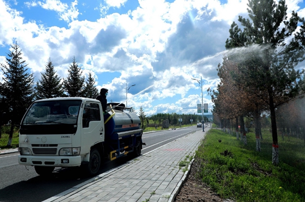 阿木爾林業(yè)局病防站利用噴霧車對(duì)樟子松綠化樹木進(jìn)行病蟲害防治(王力 攝)