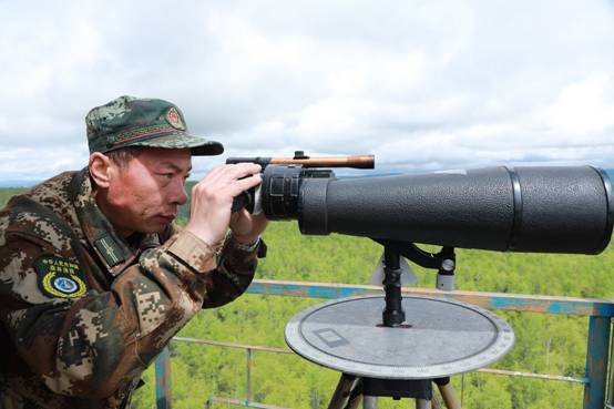 阿木爾林業(yè)局紅旗林場“阿08”瞭望塔瞭望員鄭巖住進(jìn)了增加保溫層的塔室,激發(fā)了工作熱情,正在密切瞭望,做到有火早發(fā)現(xiàn)、早報告(王力 攝)