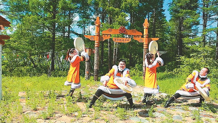 在新生鄂倫春族鄉(xiāng),舞蹈演員們伴隨著鼓聲跳動著,生動展示著鄂倫春族舞蹈和服飾。在民族體驗區(qū),非遺傳承人拿出看家本領,紛紛展示非遺魅力,鄂倫春族剪紙、樺樹皮制作、刺繡、皮袍制作……鄂倫春族原汁原味的傳統(tǒng)技藝一一呈現(xiàn)眼前。