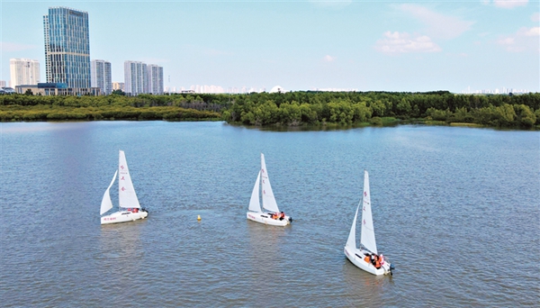 連日來(lái),哈爾濱市職工帆船帆板運(yùn)動(dòng)協(xié)會(huì)的40余名隊(duì)員,在一湖三島濕地的訓(xùn)練基地中進(jìn)行新帆船的駕乘訓(xùn)練,為相關(guān)帆船比賽做準(zhǔn)備。黑龍江日?qǐng)?bào)記者 張澍攝