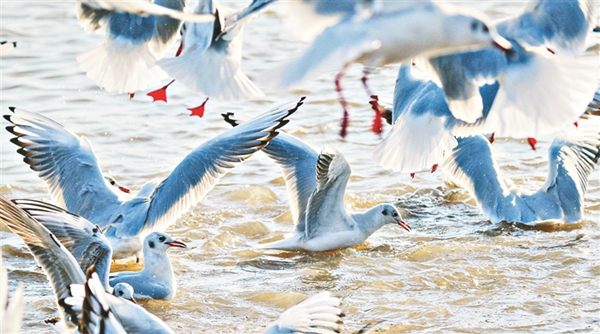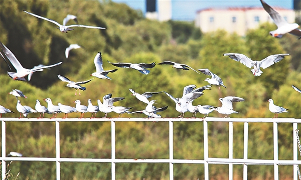 近年來,隨著環(huán)境保護(hù)力度的加大,松花江生態(tài)持續(xù)向好,水豐魚多,給紅嘴鷗等候鳥提供了豐富的食物。每年,都有超過萬(wàn)只的紅嘴鷗春秋兩季在松花江這處“驛站”歇腳。 黑龍江日?qǐng)?bào)記者 張澍攝