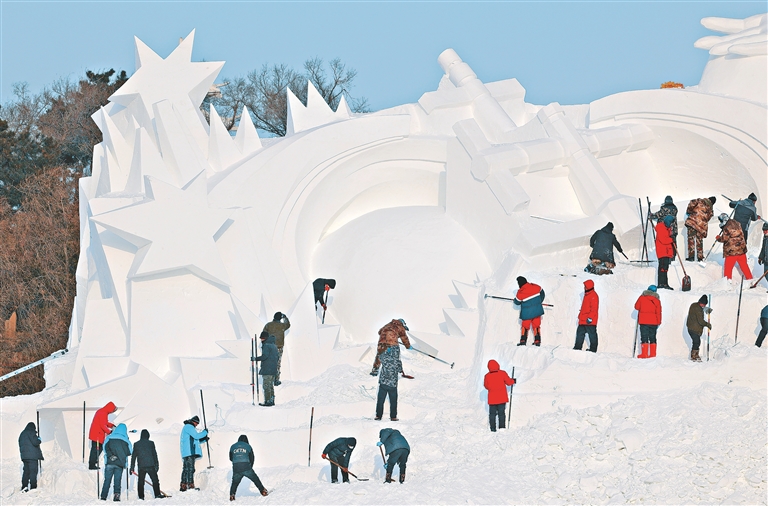 本報(bào)訊(記者 劉艷)記者從哈爾濱市太陽(yáng)島風(fēng)景區(qū)獲悉,13日,第35屆哈爾濱太陽(yáng)島雪博會(huì)大型主塑《逐夢(mèng)》正式開鏟。主塑長(zhǎng)100米,高33米,將由70余位雕刻師用一周左右的時(shí)間完成,用雪量近2.6萬(wàn)立方米。