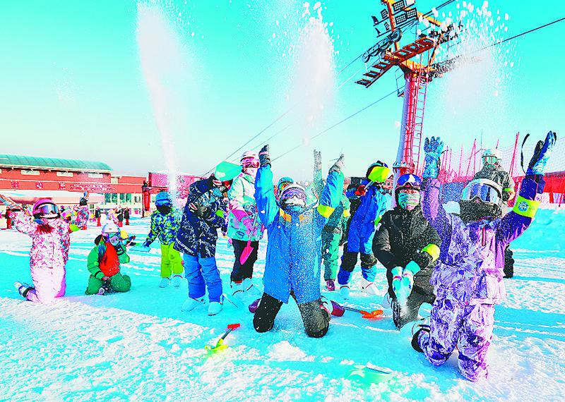 “這里既驚險(xiǎn)又刺激,太讓人上癮了?!眮?lái)自外地的李強(qiáng)夫婦是滑雪愛(ài)好者,這次還帶來(lái)了兩歲半的兒子一起滑雪?!皬难┚叻?wù)區(qū)大廳到整體雪道,這次改造升級(jí)變化特別大,并且還推出多種滑雪套餐,我們辦了一張季卡,想帶著小朋友來(lái)培養(yǎng)愛(ài)好,我兒子對(duì)雪地摩托特別感興趣。”