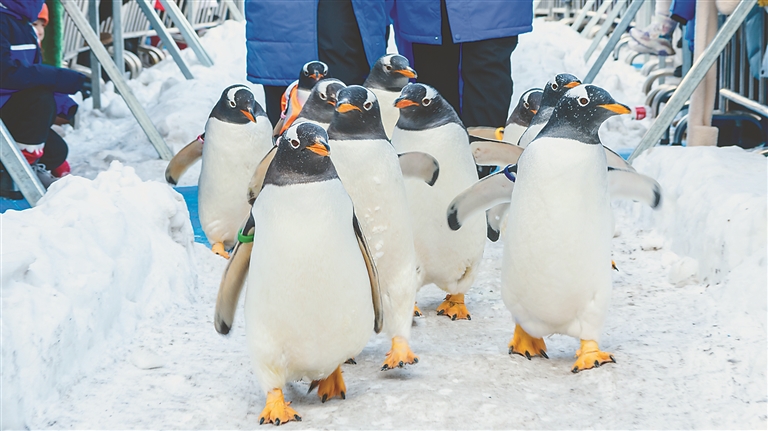 “我們就是專程為‘淘學(xué)企鵝’而來,能在哈爾濱看到全國僅有的企鵝冰雪巡游,真的不虛此行。”早在1年前,上海游客孟蕓就通過短視頻看到它們背著小書包打卡黑龍江美景的身影,成為妥妥的“鵝粉”。她說,為了能在前排近距離觀看,她更是早早就來到極地廣場等候。哈爾濱極地公園營銷部經(jīng)理崔美艷說,“淘學(xué)企鵝冰雪巡游”自啟動以來,每日引萬人打卡,成為今冬的爆款網(wǎng)紅活動,吸引全國游客來到哈爾濱看企鵝打卡拍攝,全網(wǎng)曝光量更是在25天的時(shí)間里突破了8.5億。