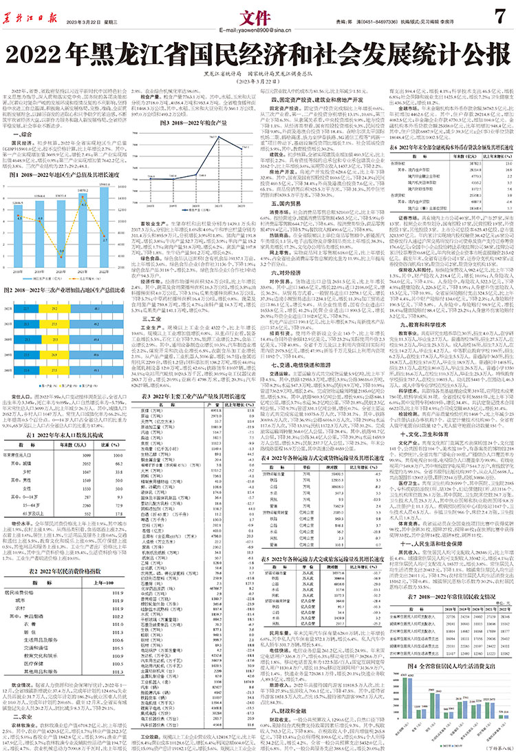 2022年黑龍江省國(guó)民經(jīng)濟(jì)和社會(huì)發(fā)展統(tǒng)計(jì)公報(bào)