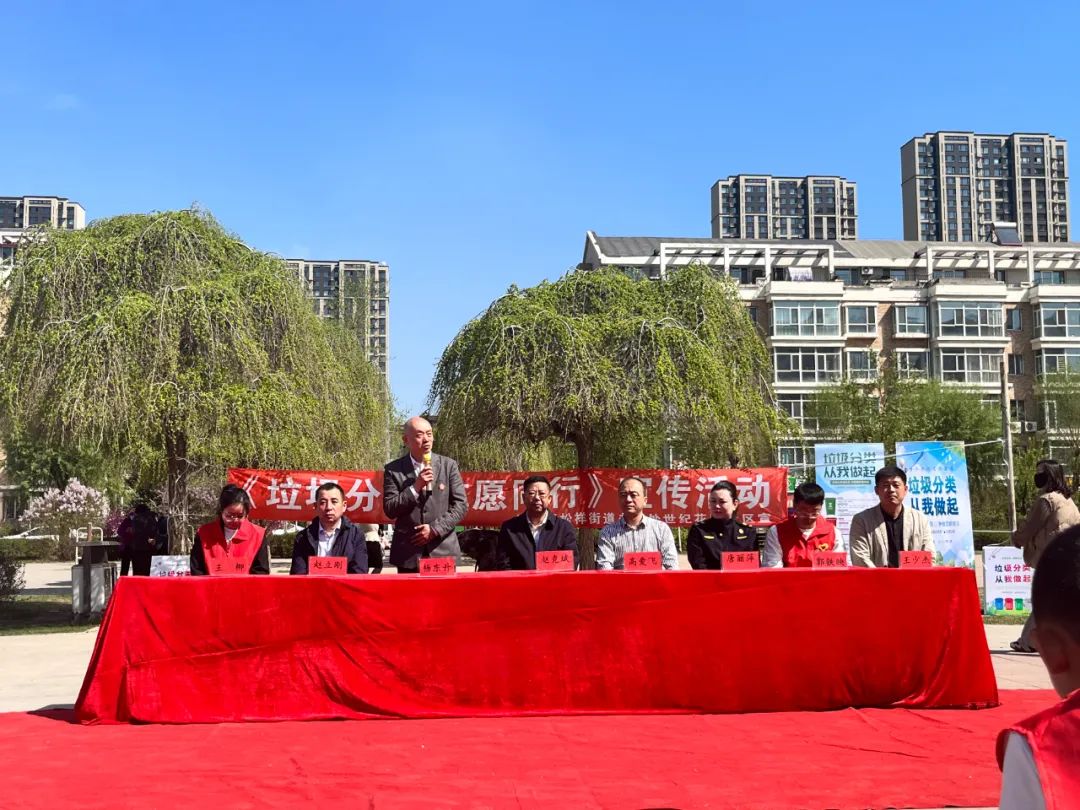 活動開場,松北區(qū)松祥街道辦事處世紀花園社區(qū)王少杰書記作了表態(tài)發(fā)言,作為垃圾分類監(jiān)督員、推廣員,要履行好自己的職責,做好垃圾分類工作。通過公益活動宣傳,要把垃圾分好類,為環(huán)境保護做出自己的貢獻。同時也呼吁各位居民朋友自覺分類投放垃圾,共同為社區(qū)的環(huán)境貢獻自己的一份力量。