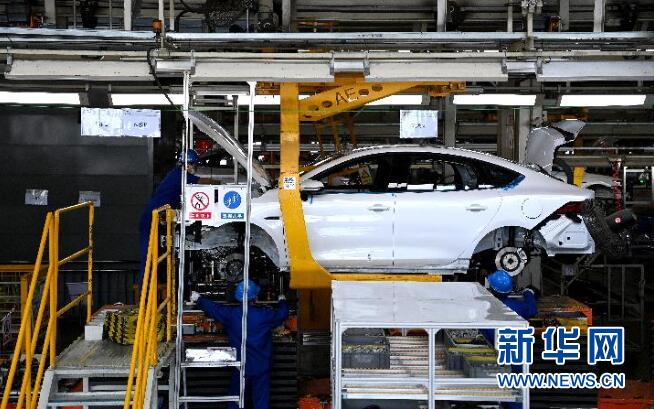 2022年4月20日,工作人員在西安比亞迪草堂工業(yè)園汽車(chē)總裝廠進(jìn)行新能源汽車(chē)裝配。新華社記者 劉瀟 攝