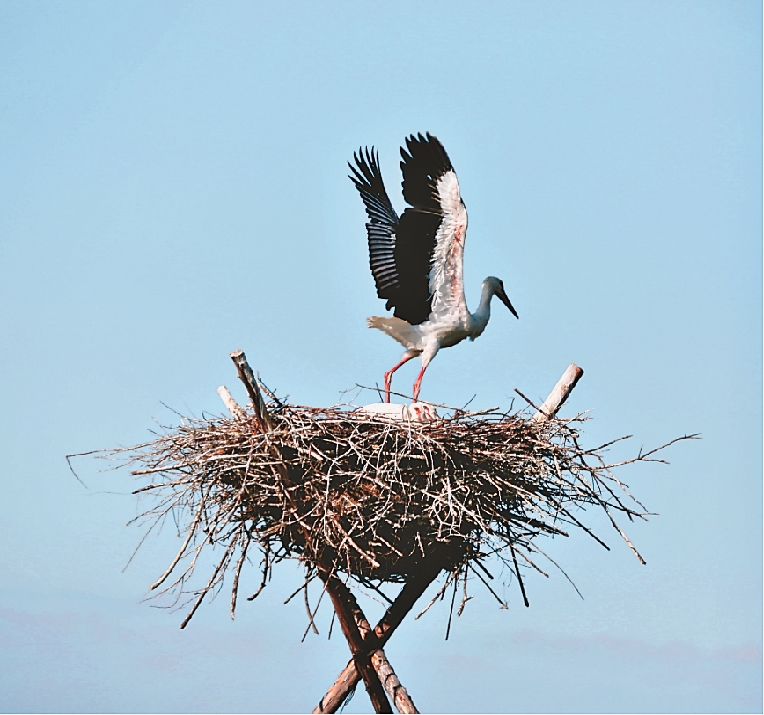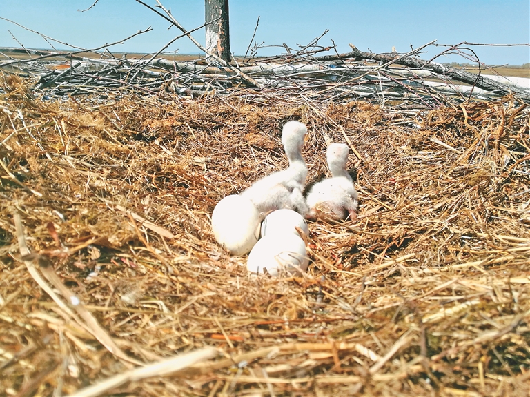 保護區(qū)管理局保護科負責人欒新介紹,30年的時間里,人工招引巢結(jié)構(gòu)由原來的單一人工樹巢更新優(yōu)化到鐵質(zhì)三腳架招引巢,具有牢固性強、耐腐爛、利用年限久、招引成功率更高的特點。截至目前,保護區(qū)已為東方白鸛搭建了人工招引巢389個。