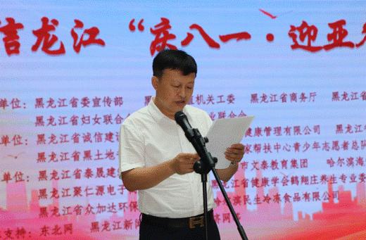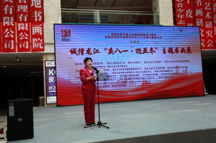 省直機(jī)關(guān)工委行業(yè)協(xié)會商會黨建工作部部長、全省性社會組織黨委專職副書記秦曉明致辭。他表示,相信通過這次活動的舉辦,將進(jìn)一步激勵軍民同心,增強(qiáng)情感認(rèn)同,深化同呼吸、共命運(yùn)、心連心的軍民魚水情,營造擁軍優(yōu)屬、擁政愛民的濃厚社會氛圍。同時,以亞冬會為媒,以書畫展為平臺,充分展示文明尚禮、熱情自信的冰城風(fēng)貌,領(lǐng)略龍江深厚的冰雪運(yùn)動底蘊(yùn)。