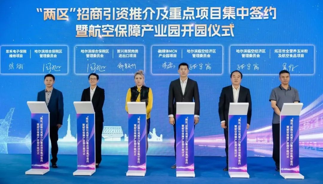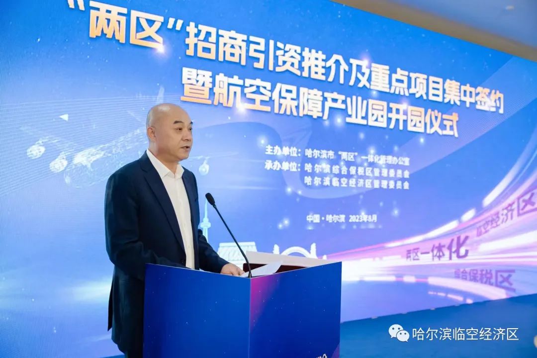 “兩區(qū)”管委會領(lǐng)導(dǎo)分別對哈爾濱綜合保稅區(qū)與哈爾濱臨空經(jīng)濟區(qū)重點園區(qū)、營商環(huán)境、產(chǎn)業(yè)政策等特色優(yōu)勢作招商推介,誠邀五湖四海的客商朋友來“兩區(qū)”投資興業(yè)、共商發(fā)展,吸引和促進優(yōu)質(zhì)資源和高端要素匯聚“兩區(qū)”。哈爾濱臨空經(jīng)濟區(qū)航空保障產(chǎn)業(yè)園在全體來賓的見證下正式啟動,該園總建筑面積12萬平方米,總投資5.6億元,重點發(fā)展航空總部經(jīng)濟、航空制造產(chǎn)業(yè)、航空物流產(chǎn)業(yè)、臨空制造產(chǎn)業(yè)以及航空服務(wù)、航空食品等產(chǎn)業(yè),致力打造為哈爾濱臨空經(jīng)濟區(qū)發(fā)展現(xiàn)代制造業(yè)的新名片,成為國內(nèi)知名的航空保障產(chǎn)業(yè)集群。