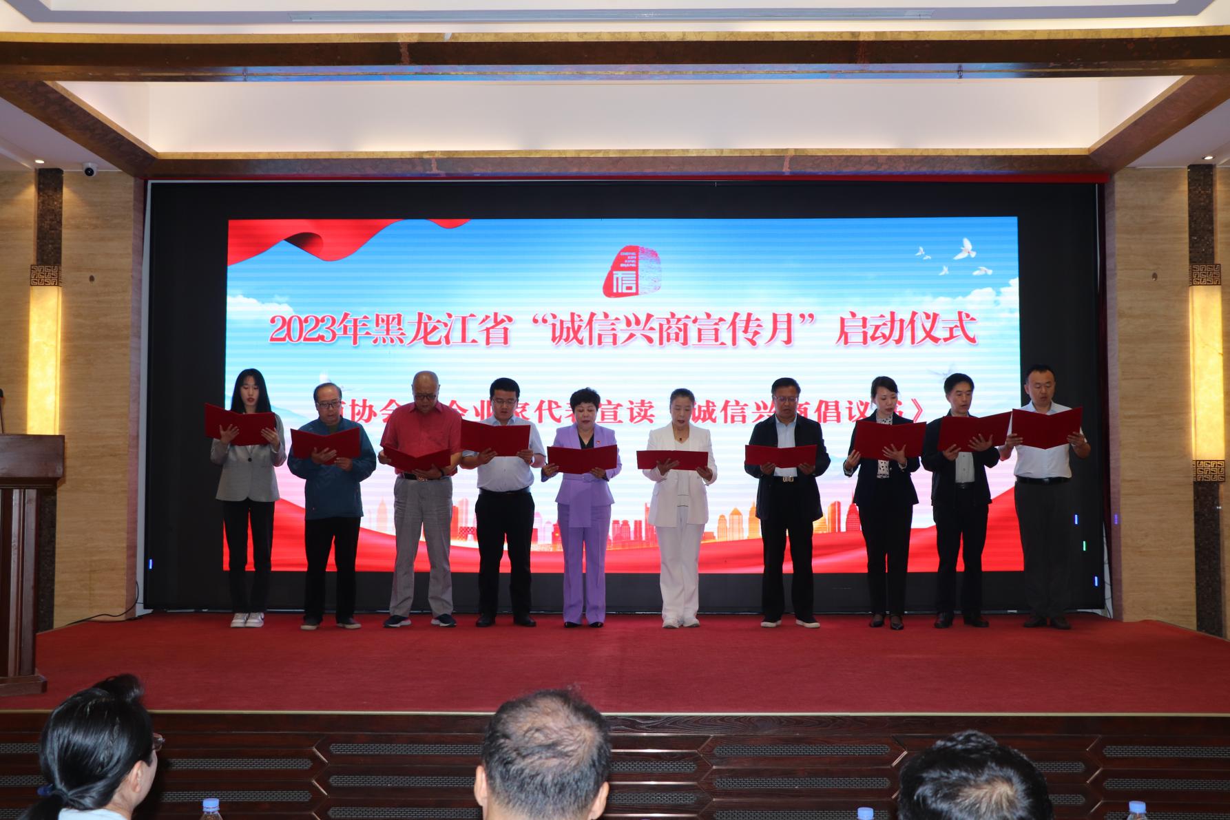 省委宣傳部、省直機關(guān)工委、省商務(wù)廳、省交通運輸廳、省文旅廳、省國資委、省營商環(huán)境建設(shè)監(jiān)督局、哈爾濱海關(guān)、省稅務(wù)局、省市場監(jiān)督管理局、省外匯管理局、省高級人民法院、省工商聯(lián)、哈爾濱商業(yè)大學、省廣播電視臺等相關(guān)單位人員,省誠信建設(shè)促進會、省社會保障行業(yè)協(xié)會、省內(nèi)行業(yè)商協(xié)會負責人,優(yōu)秀企業(yè)代表及媒體代表等100余人參加了啟動儀式。