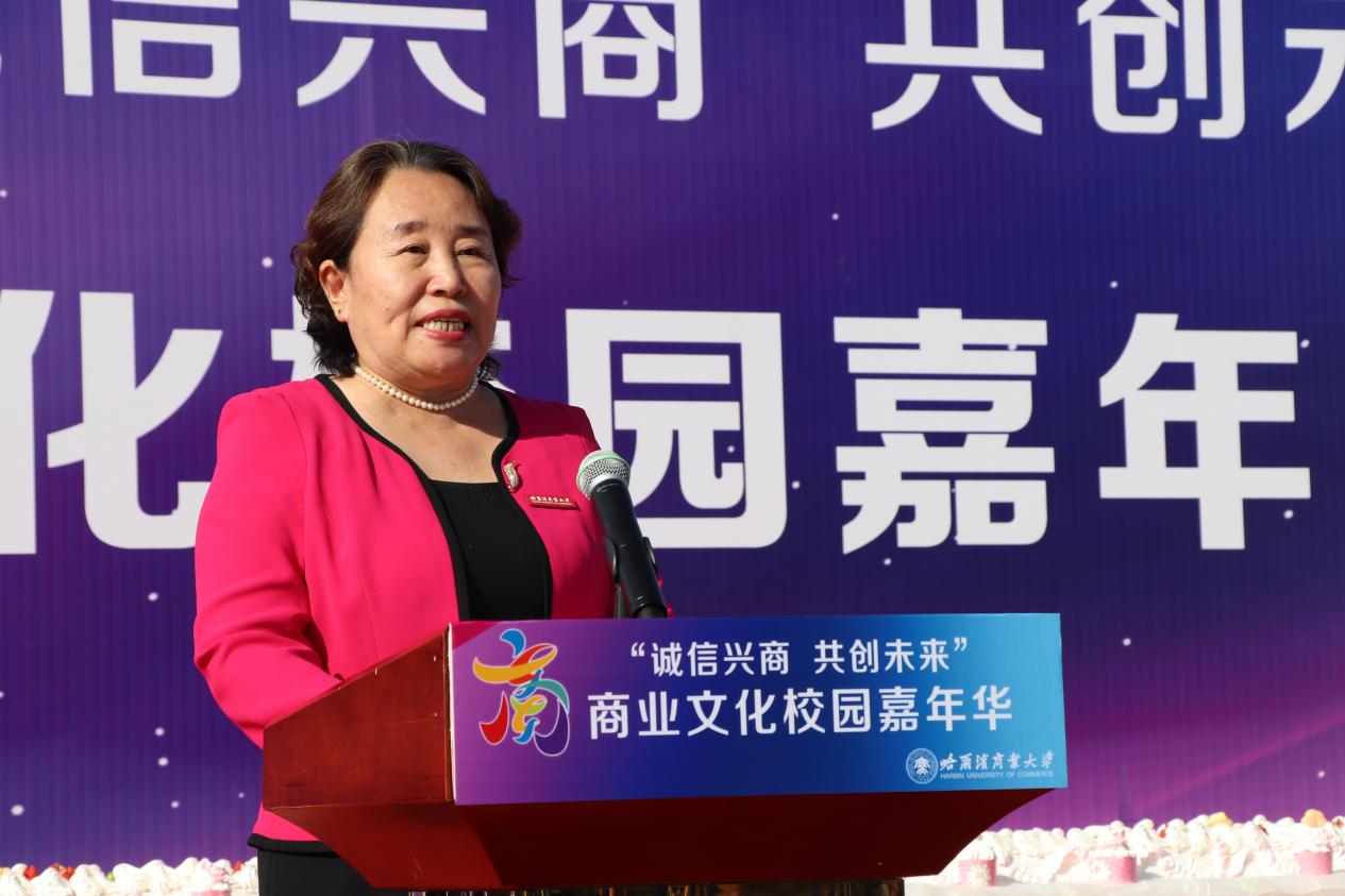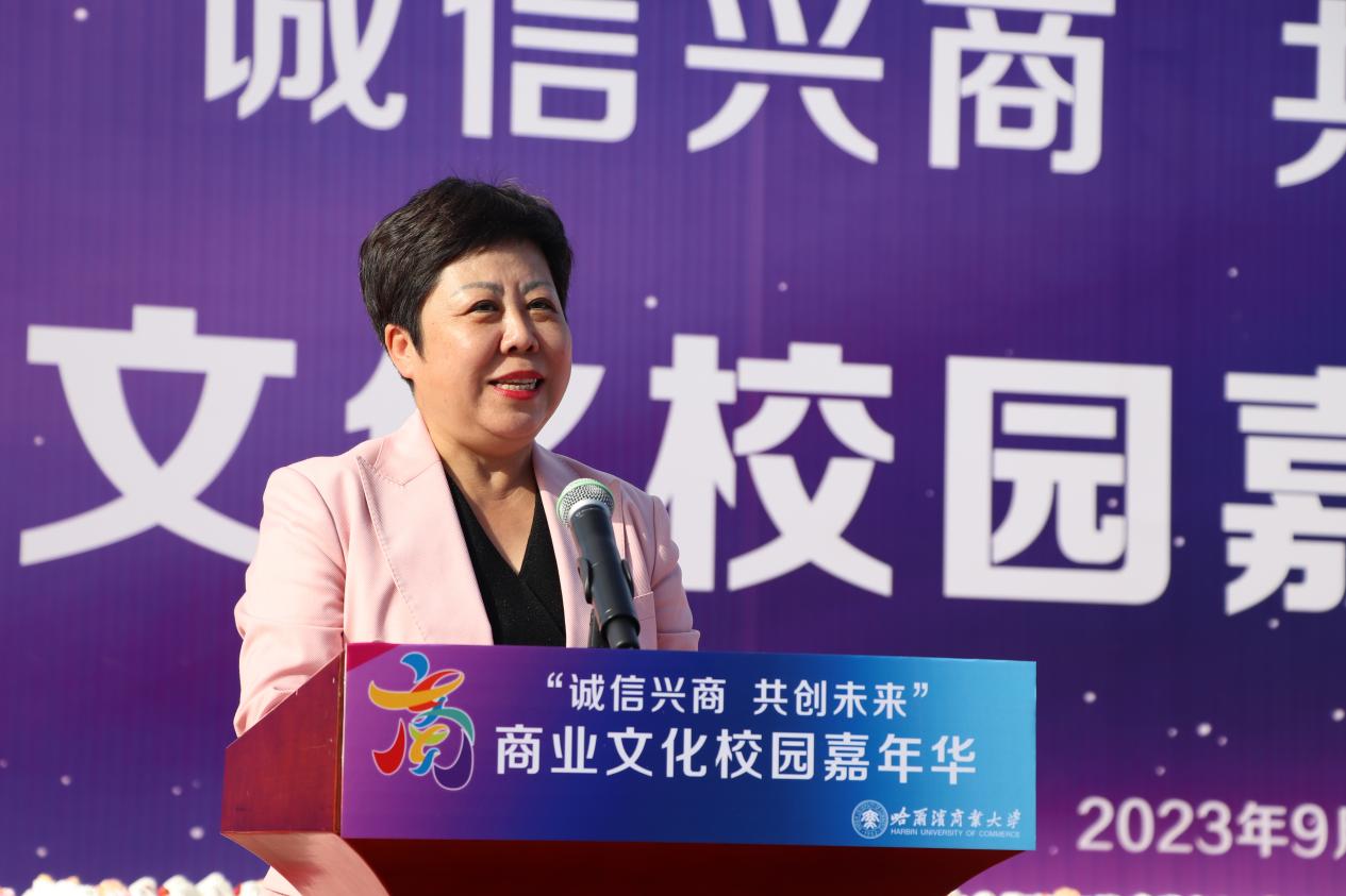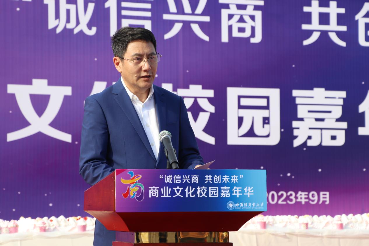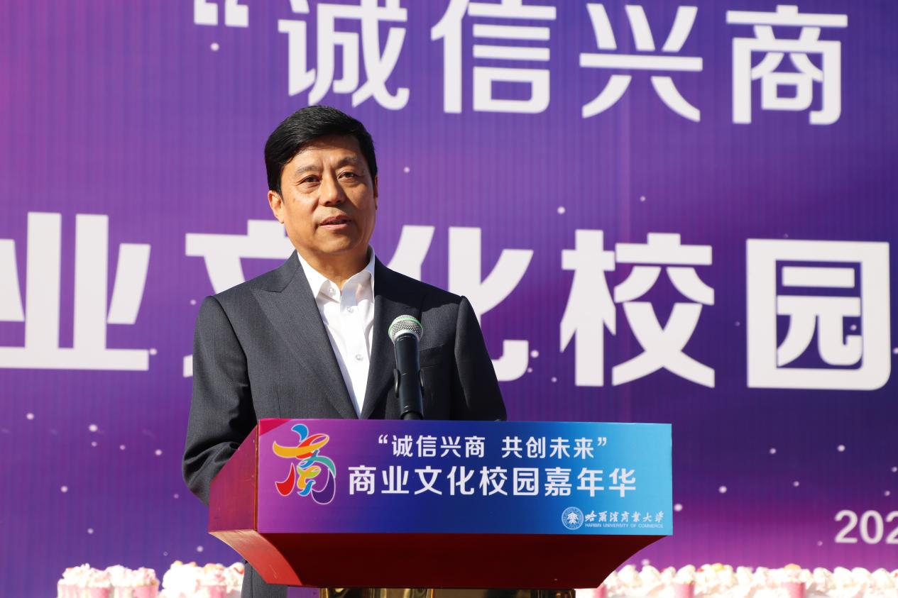 哈爾濱商業(yè)大學(xué)黨委書記孫先民致辭。他表示,誠信“軟實(shí)力”為高質(zhì)量發(fā)展提供“硬支撐”。本屆“誠信興商·共創(chuàng)未來”商業(yè)文化校園嘉年華活動(dòng)堅(jiān)持以文化力量啟智潤心、固本培元,是深入學(xué)習(xí)貫徹習(xí)近平總書記在主持召開新時(shí)代推動(dòng)?xùn)|北全面振興座談會(huì)和視察我省時(shí)的重要講話重要指示精神,全面落實(shí)立德樹人根本任務(wù)的務(wù)實(shí)舉措。哈爾濱商業(yè)大學(xué)作為新中國第一所多科性商業(yè)大學(xué),始終堅(jiān)持“大商鑄才、大雅育人、商雅兼?zhèn)洹⒔?jīng)世濟(jì)民”的育人理念,厚植師生“心懷祖國,至誠奉獻(xiàn),以商弘業(yè),矢志一流”的大商之道?;顒?dòng)將充分發(fā)揮老字號(hào)在文化引領(lǐng)、品牌建設(shè)、產(chǎn)業(yè)升級等方面的示范引領(lǐng)作用,彰顯龍江市場主體活力與創(chuàng)新力,聚焦建設(shè)“六個(gè)龍江”、推進(jìn)“八個(gè)振興”,筑牢堅(jiān)定龍江文化繁榮發(fā)展的自信根基,進(jìn)一步凝聚師生扎根龍江、服務(wù)龍江、建設(shè)龍江的情懷和力量。