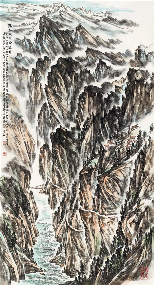 舒建新 怒江大峽谷遠(yuǎn)眺 234cm×123cm 國(guó)畫(huà)