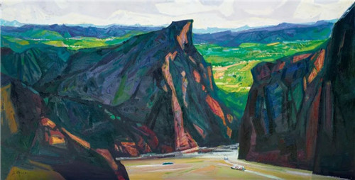 宛少軍 天門中斷楚江開(kāi) 120.5cm×180cm 油畫(huà)