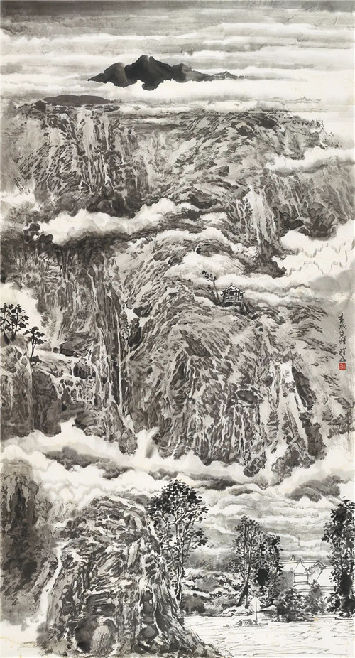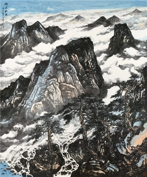 譚長(zhǎng)德 衡山松云 231cm×192cm 國(guó)畫(huà)
