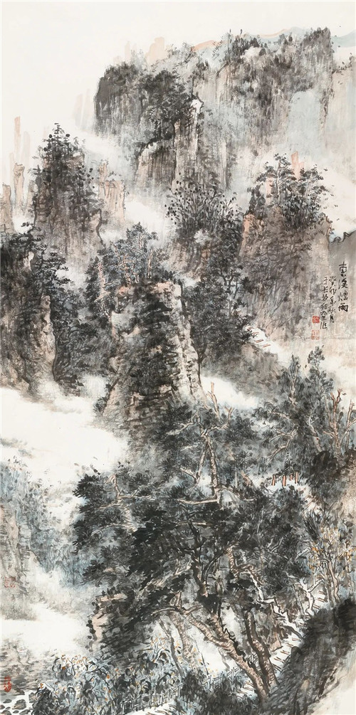 田紹登 索溪煙雨 247cm×124cm 國(guó)畫(huà)