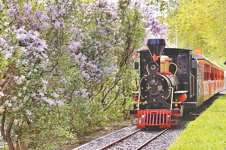 時下,哈爾濱市兒童公園內丁香花盛開,香氣四溢,打滑梯、蕩秋千,許多市民帶著孩子前來游玩。剛剛投運的兒童小火車,載著“大朋友”、小朋友們在花海中穿行,伴著沁人心脾的花香,感受一份輕松愜意。