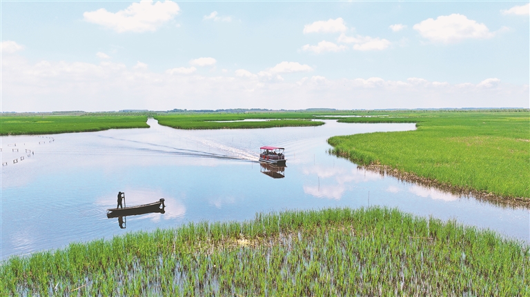 作為松花江流域保存完整、濕地多樣性特征顯著的天然遺跡,千鶴島濕地水草茂盛,魚類繁多,成為鳥類繁衍生息的天然場所。據(jù)風景區(qū)工作人員介紹,由于濕地內(nèi)植被資源保護完好,每年都吸引大量候鳥來此繁衍生活,且數(shù)量逐年增加。特別是今年搭建38個人工鳥巢后,濕地內(nèi)的東方白鸛數(shù)量達到300余只,成為國內(nèi)數(shù)量最多的棲息種群。