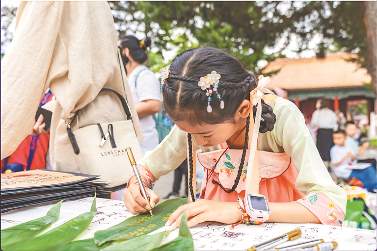 本報10日訊(記者 董云平)對古詩摘“高粽”香囊、體驗古風花鈿、沐蘭湯凈手、粽葉寫祝福、解鎖端午限量印章、領取端午彩絲……10日,省民族博物館融合傳統習俗與現代創(chuàng)意,開啟沉浸式“端午文廟行:粽情畫意 古韻新體驗”,多彩傳統民俗、非遺文化將活動現場節(jié)日氛圍感拉滿,帶給大家端午出游“新”體驗。