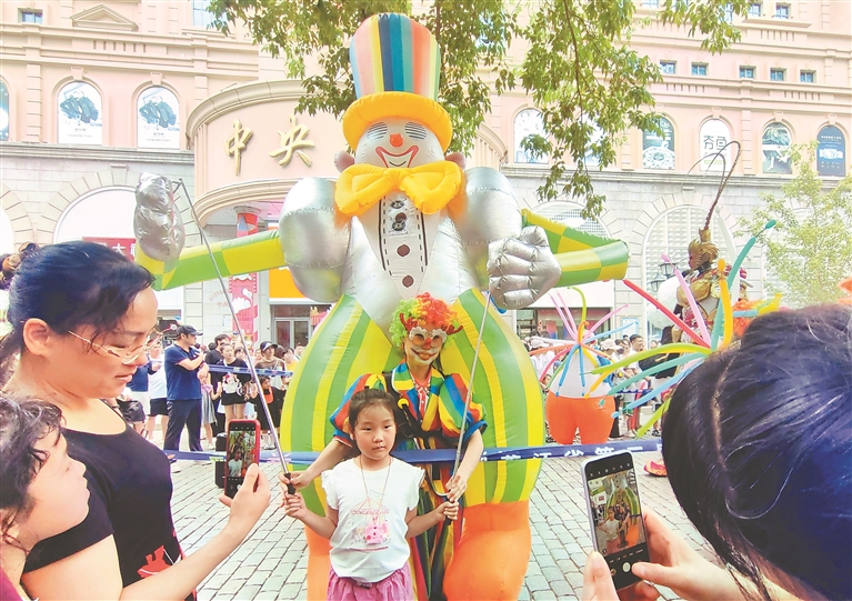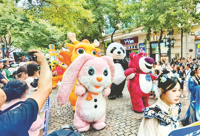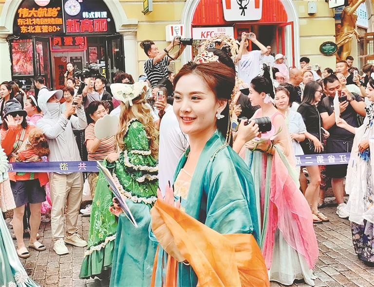14日下午,哈爾濱市道里區(qū)中央大街上舉行了巡游活動(dòng),吸引游客們駐足觀看、拍照。