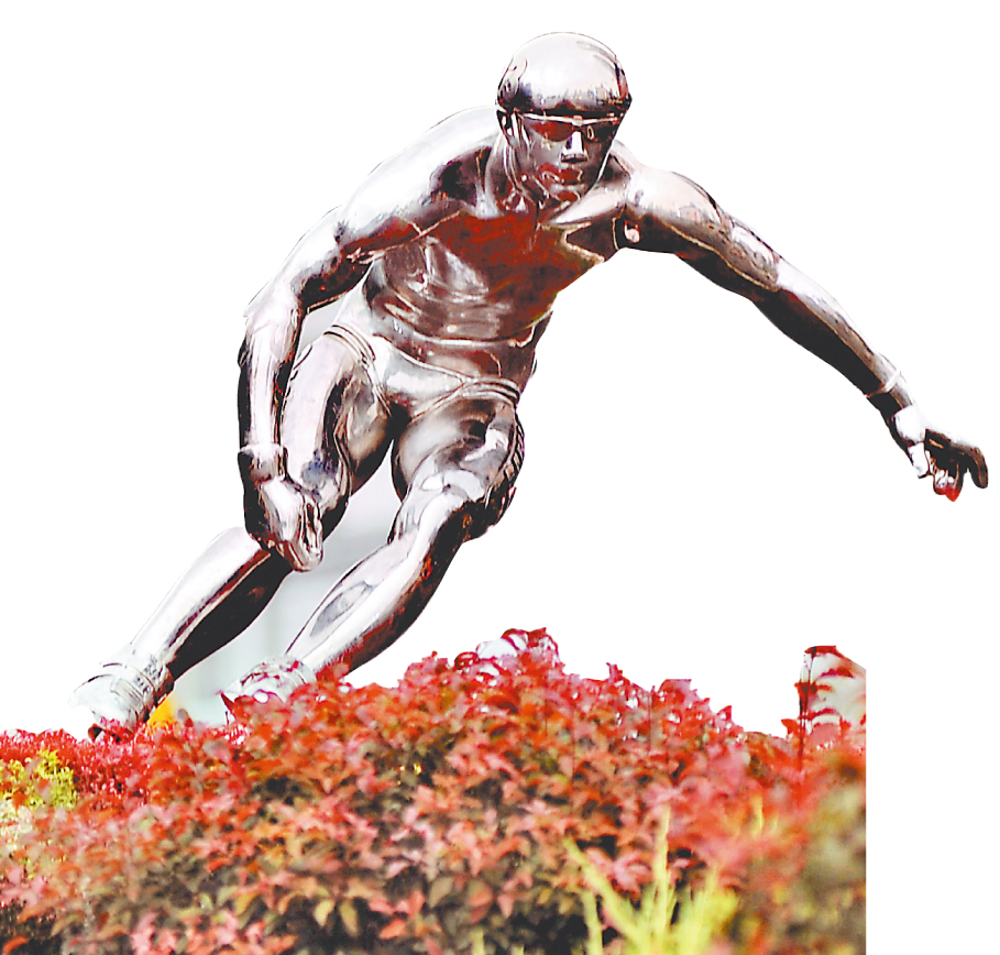 9日,在哈爾濱市南崗區(qū)紅軍街上,一處綠地里以亞冬會冰雪比賽項(xiàng)目為主題的雕塑群吸引了行人的目光。這些雕塑外觀銀色、制作精美、栩栩如生,展現(xiàn)了運(yùn)動員奮力拼搏、勇往直前的精神風(fēng)貌。