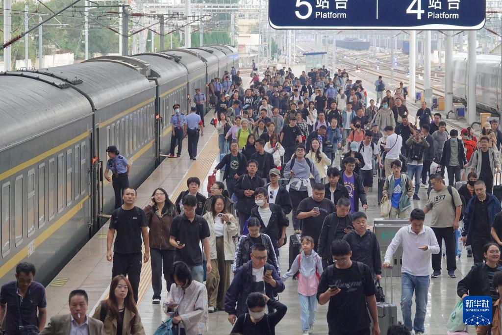 9月30日,旅客在山東煙臺(tái)站出站。新華社發(fā)(唐克攝)