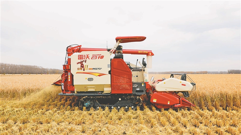 無人駕駛的收獲機進行收獲作業(yè)。周立軍攝