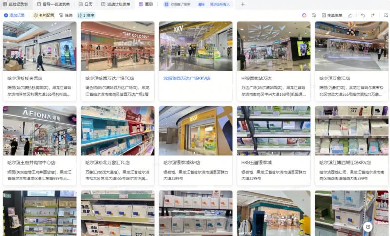線下巡店工作能最大程度保障各終端貨品銷售質量。過去,由于巡店工作涉及外出出差,巡店照片數(shù)據(jù)手機端無法操作整理匯總,影響問題處理時效且增加無用工作量?,F(xiàn)在敷爾佳運用飛書表單移動端操作,隨時上傳巡店結果及照片,表格儀表盤視角可以查看數(shù)據(jù)并進行一段時間內的環(huán)比、同比分析,基于數(shù)據(jù)分析做任務下達,一次巡檢從發(fā)現(xiàn)問題到整改問題的全流程都能包攬,對于每位巡檢員來說,每天至少節(jié)省2.5小時數(shù)據(jù)統(tǒng)計時間,同時更清晰的了解每個督導的外出工作情況 。此外,查貨溯源沒有系統(tǒng)的數(shù)據(jù)存檔,多個渠道數(shù)據(jù)無法同步,無數(shù)個sheet篩選查詢數(shù)據(jù),容易出錯?,F(xiàn)在,運用多維表格協(xié)同操作,多個維度查看所需數(shù)據(jù),所有查貨情況能被沉淀和實時查看。