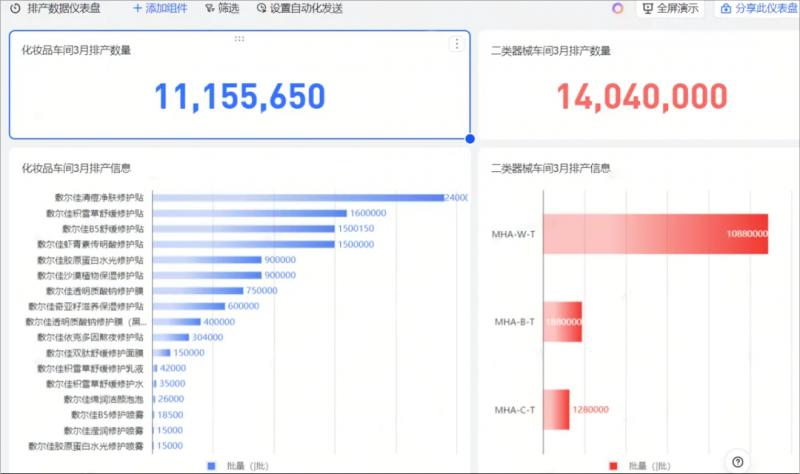 過去,敷爾佳生產計劃專員需制定多個生產車間生產排產計劃、并進行生產進度跟蹤,針對每個車間相應的共享Excel并分別設置密碼權限,表格繁多導致操作不便,查詢信息時需要在每個相應鏈接點擊并輸入密碼進入。現(xiàn)在通過運用飛書的多維表格,公共日歷等功能,生產計劃專員可以更清晰、明了的了解各車間產品排產信息。