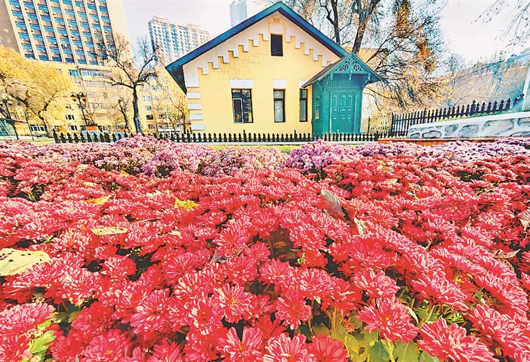 近日,哈爾濱市南崗區(qū)花園街旁,游客在修繕一新的“黃房子”前拍照留念。在滿地落葉襯托下,這些黃墻紅頂?shù)臍v史建筑更顯厚重感。房子周圍設有休閑座椅、歐式路燈、花壇、綠地等,方便人們散步、賞景。本報記者 蘇強攝