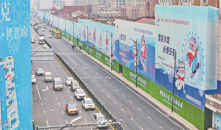 11月14日,哈爾濱市道外區(qū)景陽街上,一幅幅2025年亞冬會內(nèi)容的噴繪畫亮相,組成生動精彩的亞冬畫廊。