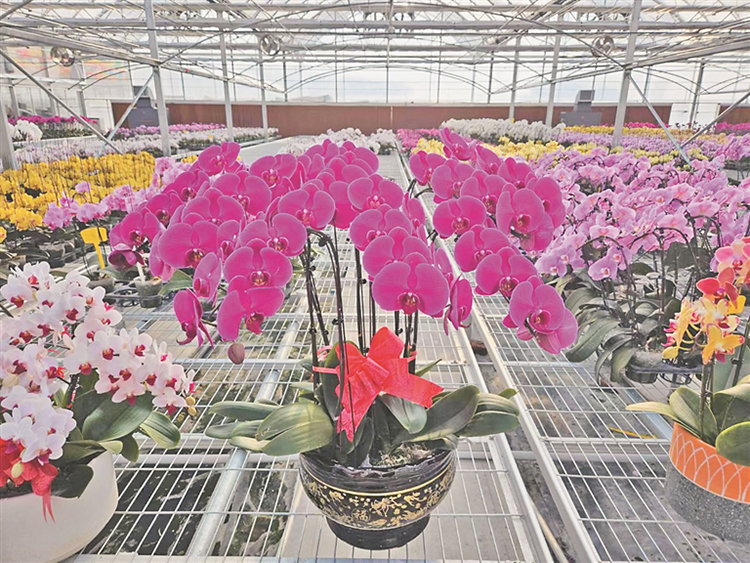 哈爾濱市道里區(qū)榆樹鎮(zhèn)新鄉(xiāng)村的現(xiàn)代化花卉溫室大棚內(nèi),上百種色彩艷麗的蝴蝶蘭花含苞待放,它們將在12月底陸續(xù)上市,裝點(diǎn)市民的生活。哈爾濱花間集農(nóng)業(yè)科技有限公司負(fù)責(zé)人劉鵬說,這里采用新型雙層膜充氣聯(lián)動(dòng)溫室培育種植蝴蝶蘭等花卉苗木。采取“公司+基地+農(nóng)戶”的合作模式,蝴蝶蘭年產(chǎn)量可達(dá)30萬至40萬株,2023年全年實(shí)現(xiàn)毛利潤(rùn)400萬至500萬元。
