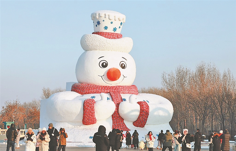 換新裝后的《雪人先生》,顏值飆升,秒變東北年俗文化的“代言人”,冰天雪地不再清冷孤寂,讓每一位來到太陽(yáng)島雪博會(huì)的游客都能感受到東北人的豪爽、熱情與對(duì)生活滿滿的熱愛。