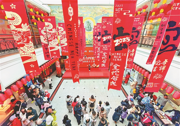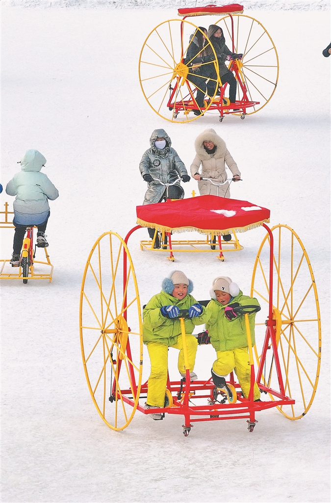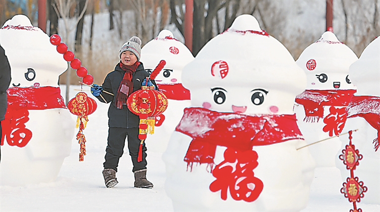 1月29日,大年初一,哈爾濱太陽(yáng)島雪博會(huì)園區(qū),游人如織。孩子們?cè)诩议L(zhǎng)的帶領(lǐng)下,坐雪圈、騎冰上自行車,玩冰戲雪,歡樂(lè)融融。省博物館展廳內(nèi),懸掛了紅燈籠、紅條幅,許多市民、游客在參觀學(xué)習(xí),打卡拍照,體驗(yàn)傳統(tǒng)民俗。