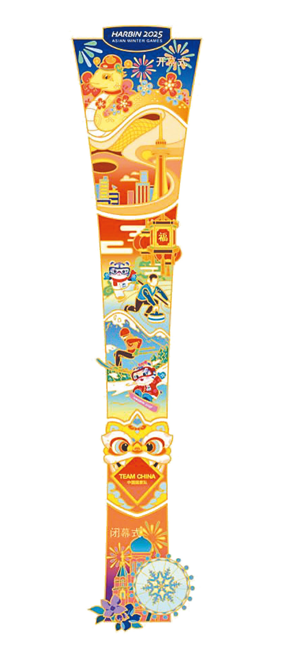 工作人員介紹,目前銷售最火爆的就是形似火炬的徽章,它是中國國家隊(duì)聯(lián)名徽章胸針套裝,設(shè)計(jì)靈感源自亞冬會火炬的輪廓,套裝內(nèi)包含六段精致的徽章,通過巧妙的拼接,呈現(xiàn)出亞冬會盛況。