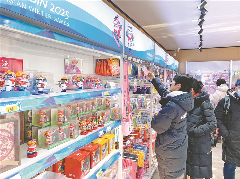 本報(bào)訊(記者郭俊峰)亞冬會即將開幕,位于哈爾濱國際會展體育中心亞冬會主媒體中心一層的特許商品零售店內(nèi)人聲鼎沸,亞冬會吉祥物玩偶、冰雪運(yùn)動徽章、琉璃冰壺等300余款特許商品引發(fā)搶購熱潮?;鹁嫦盗邢蘖堪婕o(jì)念品、亞冬會徽章、“濱濱”“妮妮”火炬?zhèn)鬟f紀(jì)念冰箱貼等極具收藏價(jià)值的限量版特許商品更是熱銷貨。