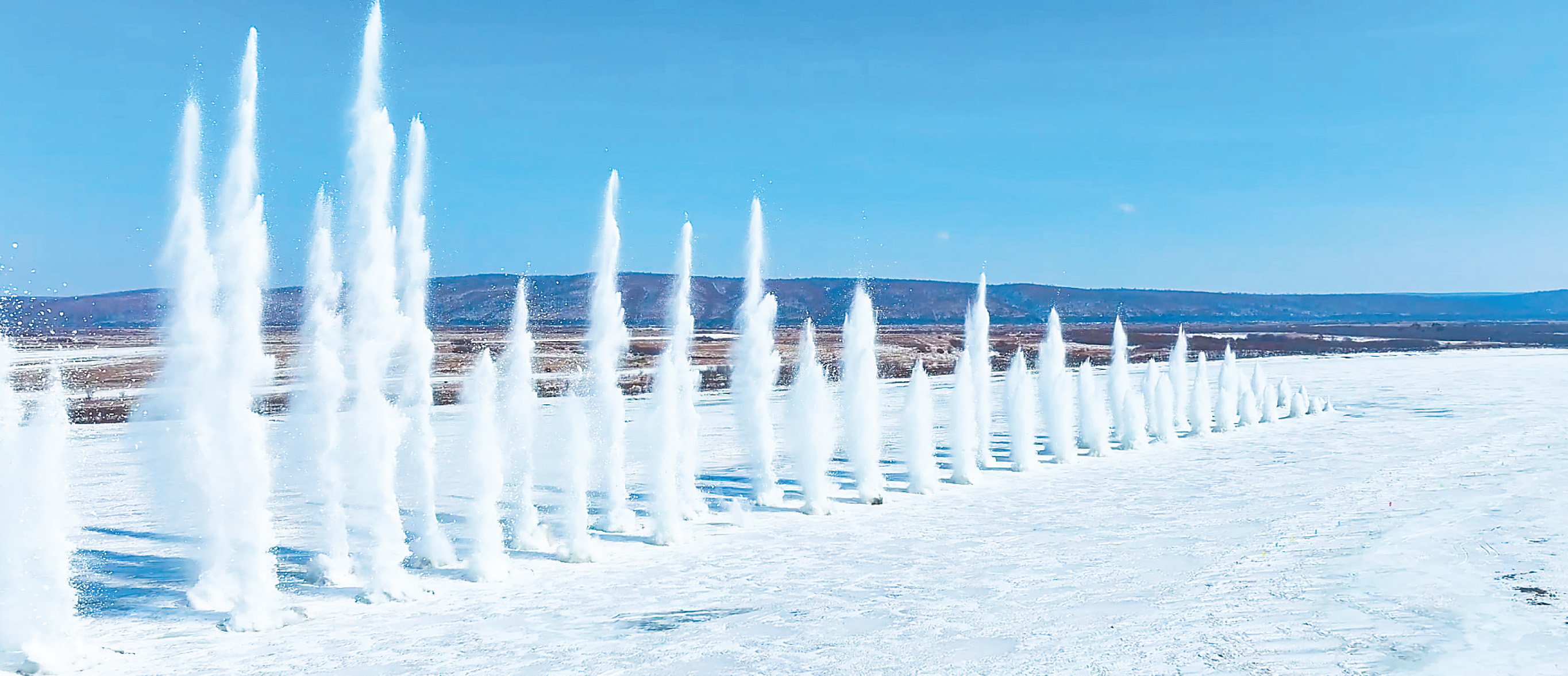 短短幾秒的時(shí)間,航標(biāo)號262到264之間的黑龍江江面上,便瞬間形成了幾十米高的冰霧柱和三公里長的破碎段,場面非常壯觀。“經(jīng)前期凌汛會商,今春黑龍江上游發(fā)生冰凌卡塞的可能性較大,所以我們決定對黑龍江呼瑪鎮(zhèn)上江島段和鷗浦鄉(xiāng)三合段兩個(gè)主要區(qū)域?qū)嵤┤L4800米的主動防凌爆破作業(yè)。”呼瑪縣水務(wù)局副局長王軍說。據(jù)悉,鷗浦鄉(xiāng)三合江段1800米的防凌爆破作業(yè)將于2日實(shí)施。
