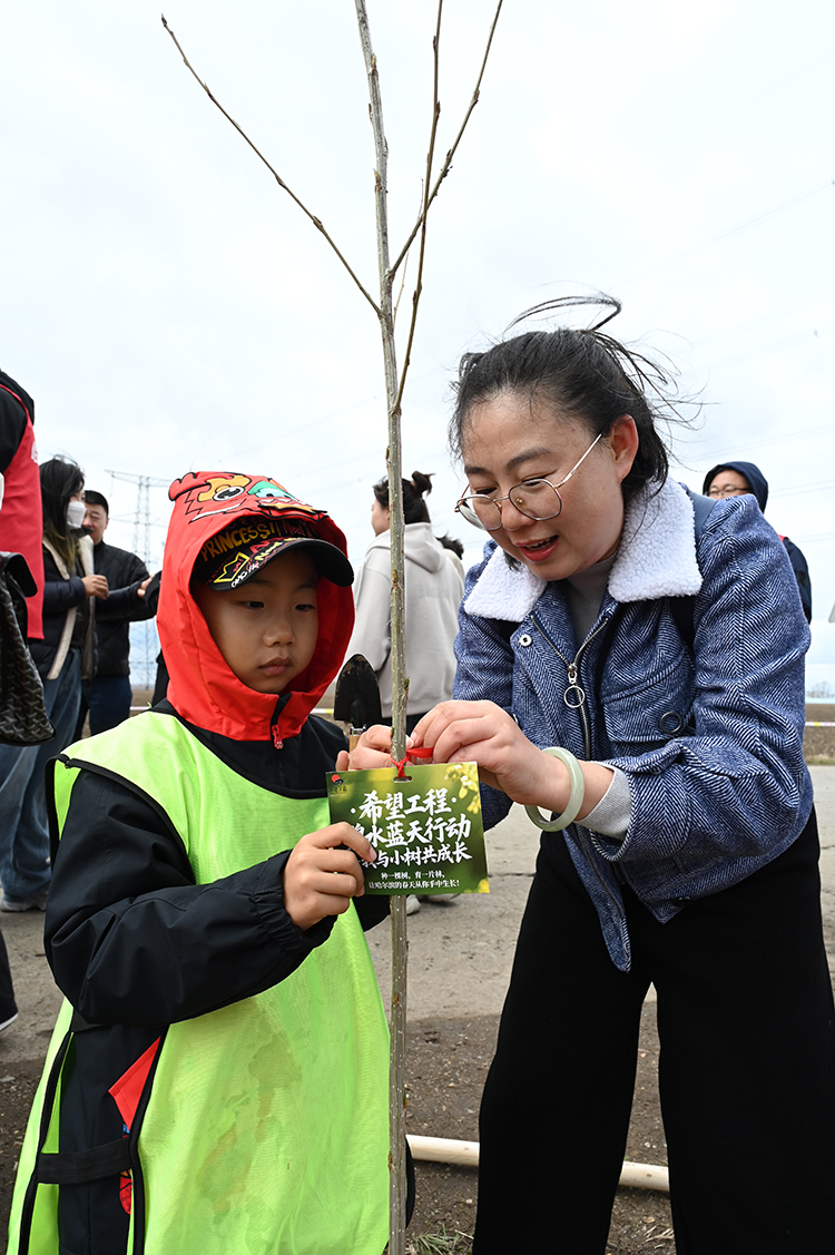 當(dāng)日上午,義務(wù)植樹(shù)隊(duì)伍集合出發(fā),分組領(lǐng)取工具并開(kāi)展植樹(shù)技術(shù)交底。活動(dòng)現(xiàn)場(chǎng),大家分工協(xié)作,揮鍬培土、扶苗澆水,共栽種樹(shù)苗100余株。每棵新植樹(shù)苗均懸掛“寄語(yǔ)卡片”,青少年們用文字和繪畫(huà)表達(dá)對(duì)未來(lái)的祝福,童心港灣學(xué)生代表以“‘我與小樹(shù)共成長(zhǎng)’ 愛(ài)綠護(hù)綠環(huán)保行”為主題,將生態(tài)環(huán)保與愛(ài)黨愛(ài)國(guó)情懷深度融合。隨后,舉行“希望林”揭牌儀式,象征著又一片綠色希望落地扎根。