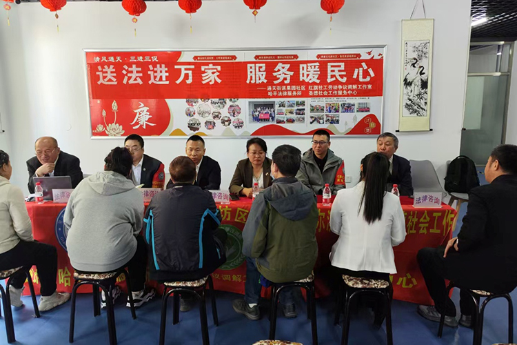 黑龍江經(jīng)濟(jì)網(wǎng)訊(裴桐 單琳琳 劉佳宇 記者魏巍)為提高社區(qū)居民對(duì)法律法規(guī)的知曉率,增強(qiáng)居民法治意識(shí)和法律素養(yǎng),提升依法維權(quán)能力,5月20日,由哈爾濱市香坊區(qū)人力資源和社會(huì)保障局、香坊區(qū)司法局、香坊區(qū)通天街道辦事處指導(dǎo),香坊區(qū)通天街道果園社區(qū)聯(lián)合香坊區(qū)紅旗社工勞動(dòng)爭(zhēng)議調(diào)解工作室、香坊區(qū)哈平法律服務(wù)所和圣德社會(huì)工作服務(wù)中心共同開展“與法同行零距離 法治社區(qū)共締造”普法宣傳活動(dòng)。通天街道辦事處主任徐東影、區(qū)人社局副局長(zhǎng)楊軍、區(qū)仲裁院院長(zhǎng)王建松參加了普法講座。