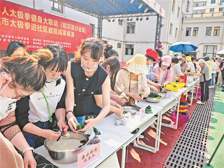 5月27日,在端午節(jié)即將來臨之際,一場別開生面的包粽子大賽在哈爾濱市道里區(qū)撫順社區(qū)舉行?,F(xiàn)場粽葉飄香,一片歡聲笑語。