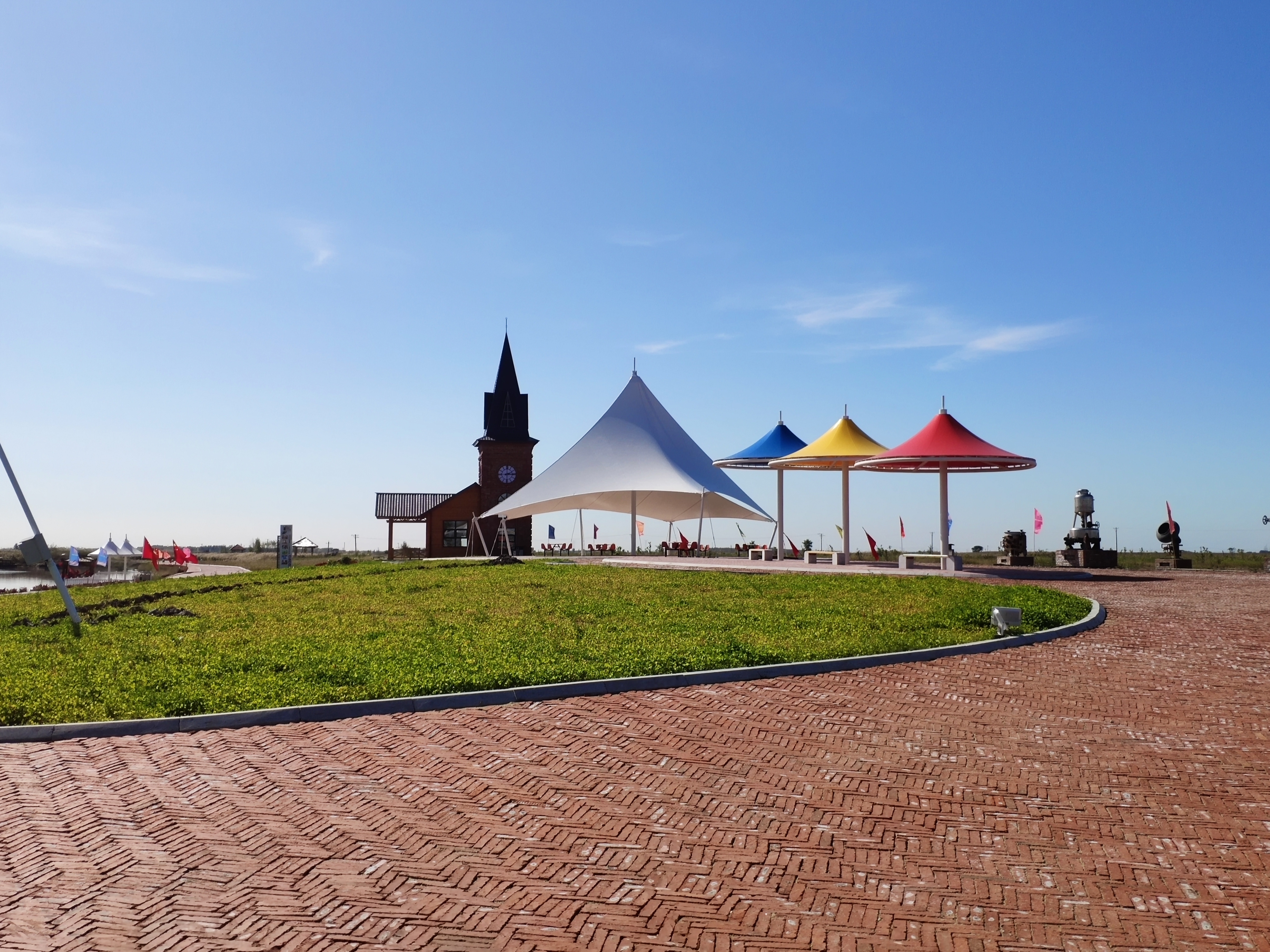 傳統(tǒng)文化廣場(chǎng)以金代文化為主題,廣場(chǎng)中央矗立著仿古城墻雕塑,兩側(cè)設(shè)有民俗展覽館,仿古建筑群與小橋流水相映成趣。休閑廣場(chǎng)以現(xiàn)代簡(jiǎn)約風(fēng)格設(shè)計(jì),配備智能健身器材和兒童游樂(lè)區(qū),設(shè)有秋千群、帳篷營(yíng)地,家庭游客可在此野餐、嬉戲。而在位于濕地制高點(diǎn)的觀景廣場(chǎng),可俯瞰湖光山色。夕陽(yáng)西下時(shí),霞光與候鳥(niǎo)齊飛,成為網(wǎng)紅打卡點(diǎn)。