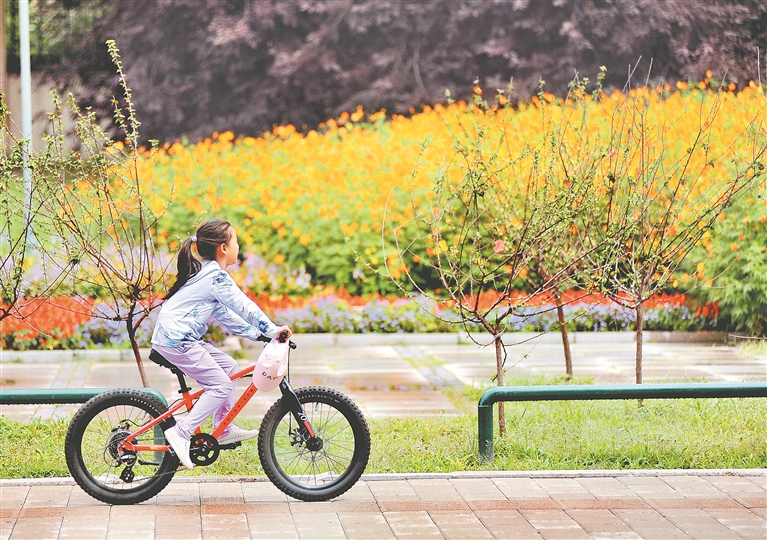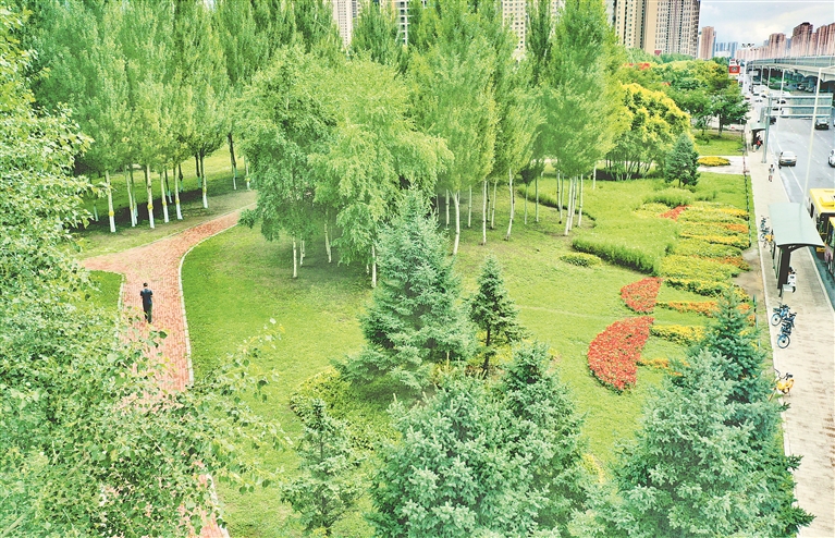3日,哈爾濱市道里區(qū)陽明灘大道附近,行人從“口袋公園”旁走過。今年,當?shù)匦陆硕鄠€“口袋公園”,占地面積數(shù)萬平方米。公園里,樹木生長茂盛,鮮花爭奇斗艷,小道從園中穿過,道旁設有座椅、健身器材等。許多附近居民到這里休閑、賞景。