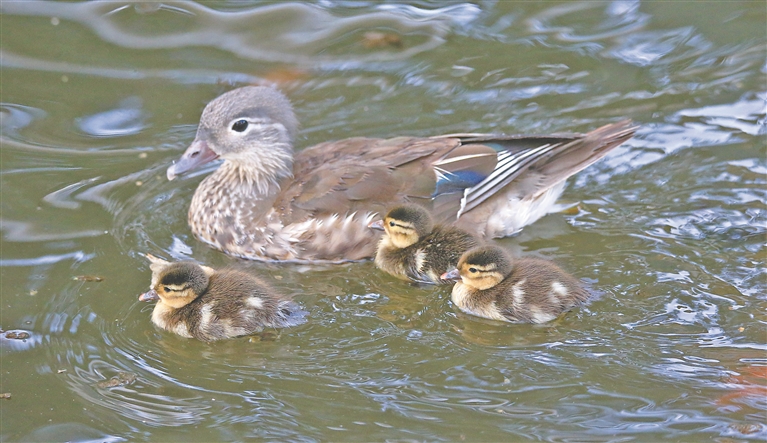 在兆麟公園的鴛鴦湖中,還生活著70只在城區(qū)其他地方出生后,自己跑來(lái)或是被愛(ài)心市民送來(lái)的小鴛鴦。如今,276只小家伙跟著媽媽在湖中四處游蕩、覓食,吸引不少外地游客駐足圍觀。